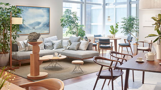 HIDA is an interior store for the furniture manufacturer Hida Sangyo established in 1920. Carrying on the spirit and techniques of Hida craftsmen dating back to the Asuka period, HIDA leverages advanced woodworking skills and knowledge to collaborate with renowned designers and introduce products to the world, promoting the HIDA brand globally. In recent years, we have also focused on initiatives that consider the environmental context behind manufacturing. This includes developing furniture featuring knots as a design element, utilizing domestically abandoned cedar wood, and expanding into aromatherapy and agricultural materials using extracts from branches and leaves. Moving forward, we will continue to deepen our exploration of forest resources, lead their utilization, and deliver the warmth of wood into daily life. We aspire to create a place where new creations are possible and where people gather in pursuit of its charm. Our vision is to establish Hida, our founding place, as the “Holy Land of Woodworking.”